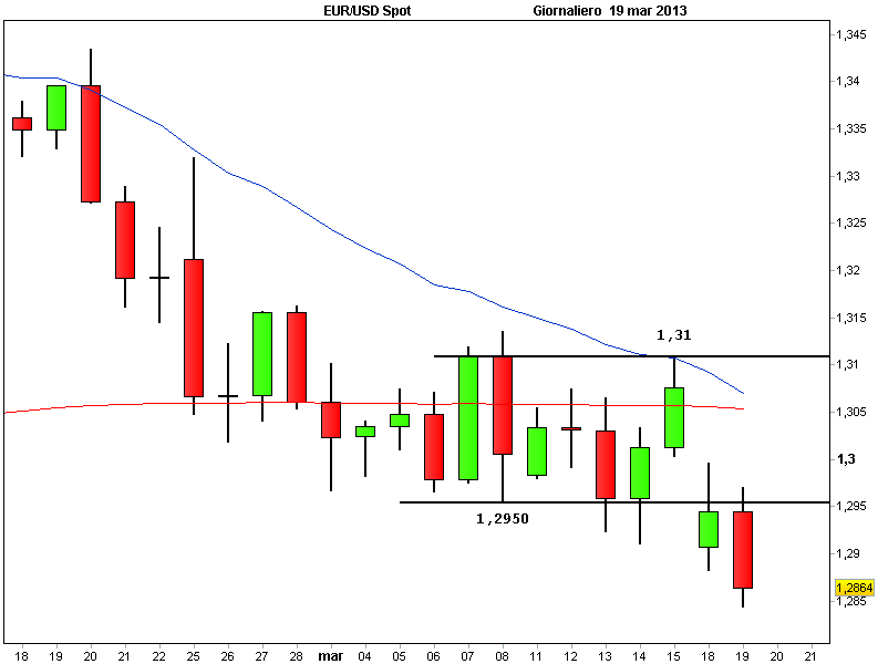 Il direttore del fondo ESM, Klaus Regling, aveva detto prima della votazione che, in caso di default disordinato di Cipro, l’intera area euro verrebbe messa in pericolo. Ieri sera, però, la Bce ha cercato di rassicurare i mercati, affermando che è pronta a garantire la liquidità necessaria a Cipro per evitare il default. Sul forex il tasso di cambio euro/dollaro è sceso fino a 1,2843, toccando così il livello più basso da quasi 4 mesi.