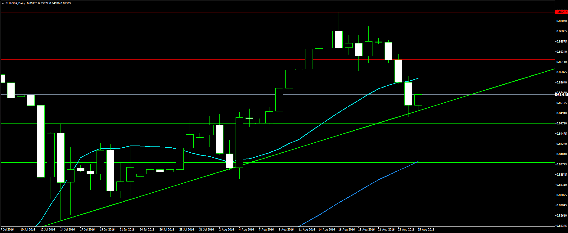 Come osservabile dal seguente grafico giornaliero, EUR/GBP ha testato con successo la trendline positiva che ne sostiene l’andamento da circa metà del mese di luglio: