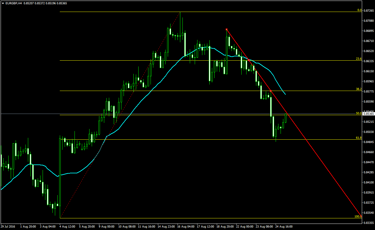 Un’eventuale pubblicazione che alteri la percezione del mercato potrebbe condurre verso i target di prezzo individuabili grazie al seguente grafico H4, che descrive in maniera chiara la situazione di euro-sterlina: