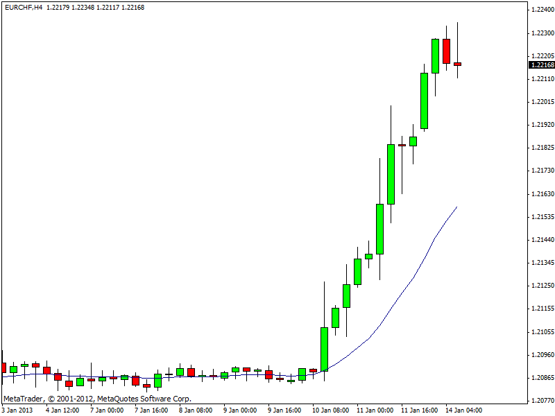 Il super-euro non mette alle corde solo dollaro, sterlina e yen, ma anche il franco svizzero rispetto al quale è da tempo legato a un peg di 1,20 "imposto" dalla Banca Centrale svizzera (da inizio settembre 2011) per evitare ulteriori apprezzamenti della divisa elvetica nei confronti della moneta unica, come avvenne nell’estate del 2011 con approdo sulla parità). Il tasso di cambio euro/franco svizzero è volato a 1,2235, sui massimi più alti degli ultimi 12 mesi.