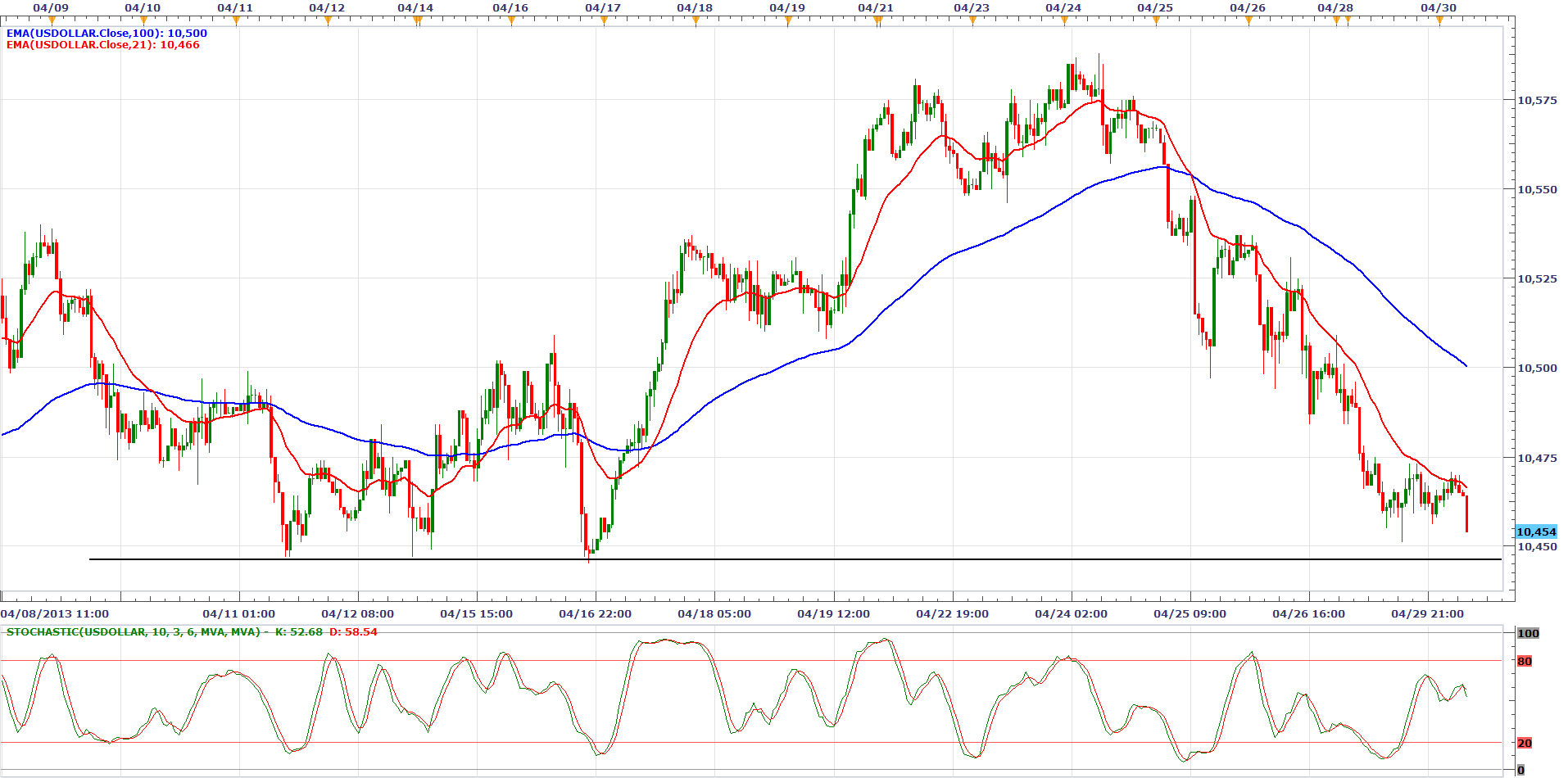 DJ FXCM Dollar Index (USDOLLAR) – grafico orario