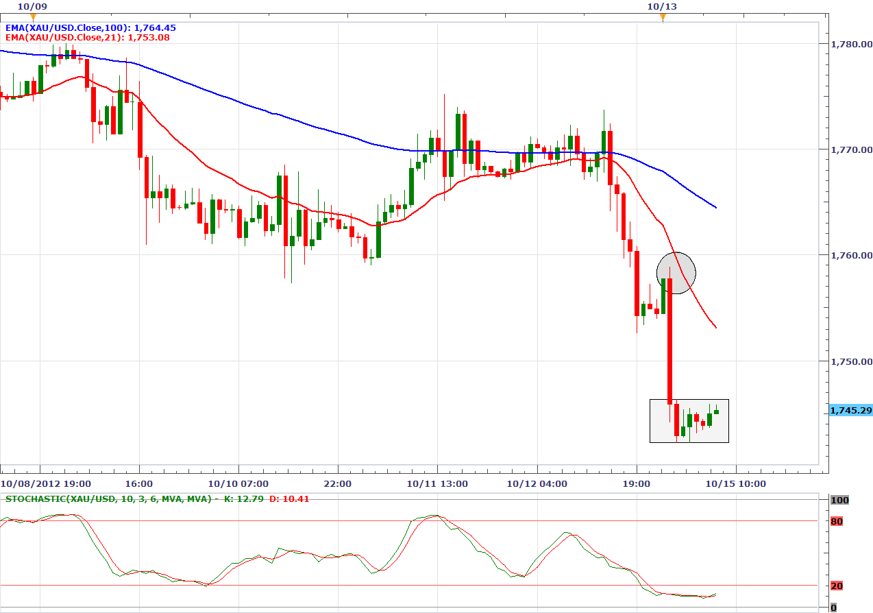 Unitamente a ciò, i prezzi alla produzione industriale (indicatore di inflazione anch’esso, in quanto in base a quanto costa produrre alle aziende il prezzo ai consumatori finali cambierà) hanno visto un rallentamento del 3.6% (anno su anno), sempre per quanto riguarda settembre e sempre un dato peggiore rispetto al precedente e alle attese, che si attestavano a -3.5%. Tali pubblicazioni denotano che il rallentamento cinese sta producendo effetti reali sulla crescita, il che è in grado di far scaturire vendite di rischio. Questo quadro però, lascia spazio ai tanti chiacchierati ed attesi stimoli monetari da parte della People Bank of China, che potrebbe decidere di incrementare quei 4 trilioni di yuan (568 miliardi di dollari al tempo) stanziati a fine 2008, una misura che andrebbe oltre ai due tagli di tassi effettuati, alla diminuzione delle riserve bancarie, alla diminuzione delle tasse, alla maggior spesa sociale ed all’accelerazione dei processi decisionali per approvare investimenti. Questo il motivo per cui l’oro non è stato acquistato come bene rifugio, in quanto spiragli d’azione che potrebbero portare della tanto amata liquidità in circolazione risultano essere concerti.