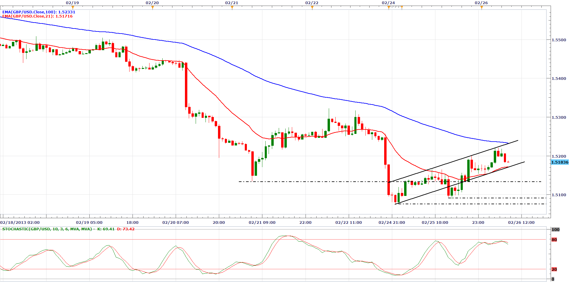 Dopo le forti discese, la sterlina ha provato a consolidare andando a formare una buona zona di congestione (che potrebbe sfociare in direzione del trend principale in atto) che vede in 1.5230/40 un’ottima zona di resistenza, statica e dinamica (media a 100 oraria) che potrebbe portare alla rottura ribassista verso i minimi, da valutare in base ai diversi livelli mostrati sul grafico.