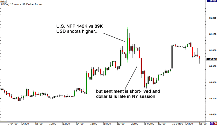 Subito dopo l’uscita dei risultati del rapporto NFP, il dollaro è salito; tuttavia, il sentiment è stato di breve durata, in quanto l’indice è presto sceso per tutto il resto della sessione di New York. Entro la fine della giornata, l’USDX si è attestato al di sotto di 80.90, meno di quanto registrato prima del rilascio del report.