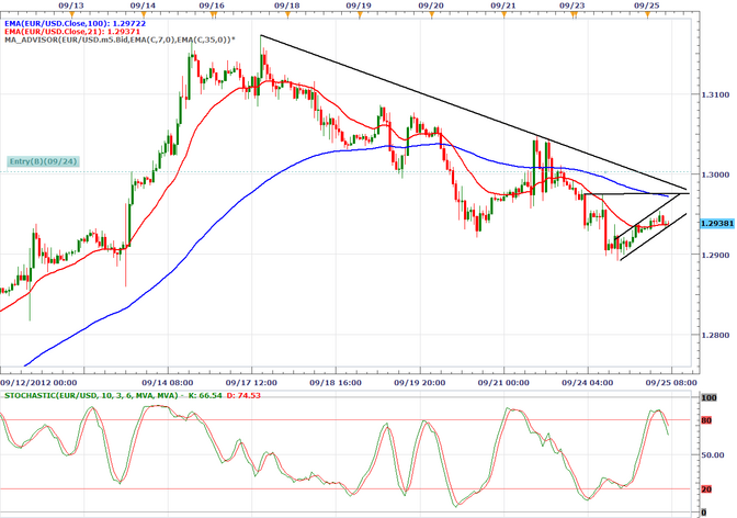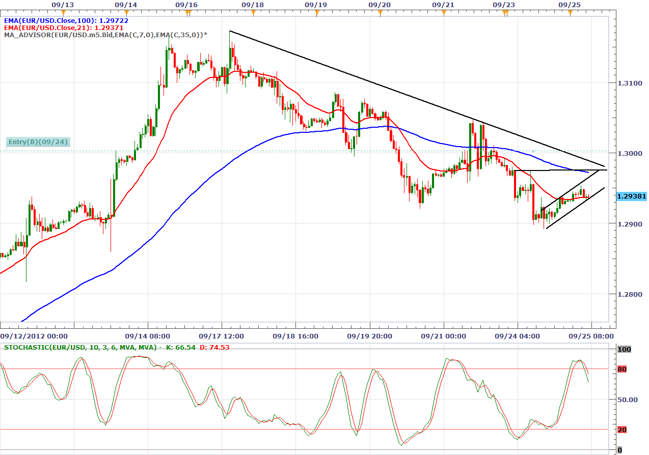 Molto bello lo swing visto sul petrolio, che ha segnato un doppio minimo in area 91 figura ed ora si trova a scambiare sotto 92.50, livello statico importante dato da un massimo relativo del 20 settembre. In cao di andamento negativo delle borse europee, potremmo assistere al tentativo di rottura ribassista di quella che potrebbe essere una figura d’inversione del trend di breve periodo che abbiamo visto, figura da sfruttare soltanto in caso di rottura rialzista di 92.50 e di 93.15 per chi è più conservativo (EMA100).
