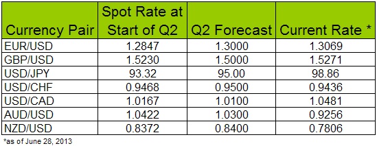 Prima di entrare nella seconda parte dell’anno, rivediamo le previsioni delle più grandi banche del mondo per il secondo trimestre 2013 e vediamo quanto sono state precise.