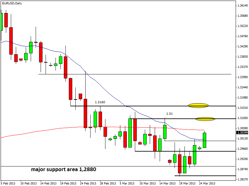 Il piano di salvataggio di Cipro, approvato questa notte dall’Eurogruppo e basato sulla ristrutturazione del settore bancario, ha dato nuova linfa vitale alla moneta unica, che negli ultimi tempi aveva sperimentato una serie di ribassi fino a 1,2840 dollari sui minimi da circa 4 mesi. Il cambio euro/dollaro sta provando a rimbalzare, ma soprattutto a consolidare sopra la soglia di 1,30. Stamattina è avvenuto uno strappo fino in area 1,3050, ma senza alcun seguito rilevante.