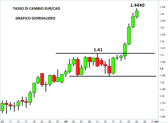 Nelle ultime settimane stiamo assistendo sul forex a un deciso calo della quotazione del dollaro canadese, in difficoltà anche contro una delle valute più vendute del momento, ovvero il dollaro americano. La flessione della valuta canadese è riconducibile ai recenti dati macroeconomici altalenanti, sia in Canada che negli Usa, ma soprattutto al deciso calo di prezzi del petrolio sui mercati internazionali. La moneta canadese ha storicamente una forte correlazione diretta con l’andamento dei prezzi del greggio americano. Anche questa volta la correlazione è stata rispettata: il crollo del petrolio Wti sui minimi degli ultimi 4 mesi ha innescato violenti vendite anche sul dollaro canadese.