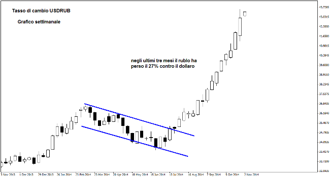 Questa somma va aggiunta ai 40 miliardi di dollari che l’istituto russo ha già speso quest’anno, a partire dall’inizio delle ostilità con l’Ucraina. Nei primi nove mesi dell’anno dalla Russia sono fuoriusciti già più di 85 miliardi di dollari, mentre lo scorso anno i deflussi di capitali avevano toccato la già consistente cifra di 61 miliardi di dollari. La svalutazione del rublo (-27% sul dollaro negli ultimi tre mesi) è dettata dalle difficoltà mostrate dall’economia russa, alle prese con una pericolosa fuga di capitali dovuta alla crisi geopolitica con Kiev.
