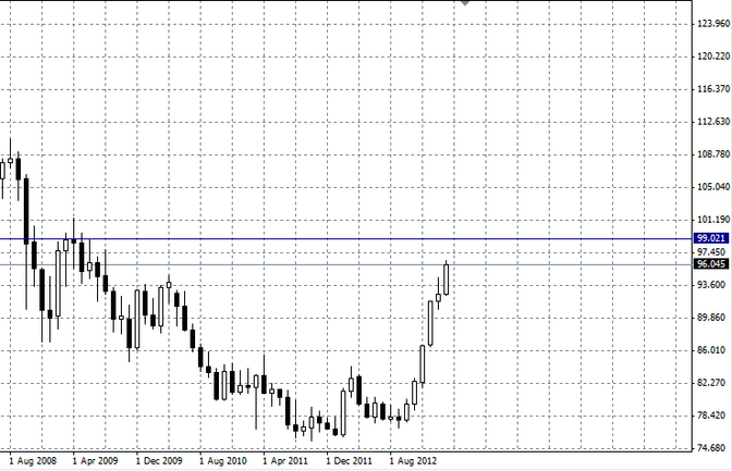 Interessante questa settimana, la formazione della candela mensile su USDJPY. Il dollaro si è apprezzato ulteriormente nelle ultime sedute, nei confronti dello yen giapponese spingendo il cross in area 96.00. Possibile, a questo punto, un ulteriore allungo fino ad arrivare ai massimi del 2009 posti in area 99.00.