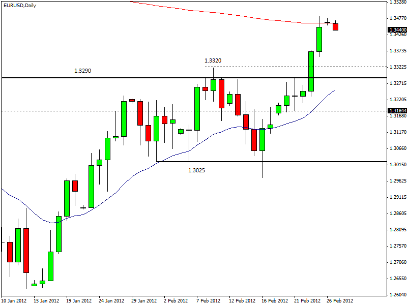 Dopo aver assistito ad un forte rally a partire da metà febbraio, praticamente senza soste, per i mercati potrebbe essere giunto il momento di prendere fiato considerando anche che molti asset hanno raggiunto livelli di resistenza importanti. Sul mercato delle valute (e delle commodity currency) il copione finora è stato long euro, petrolio e metalli preziosi, “strong sell” sullo yen. E’ probabile che il trend possa ancora continuare nelle prossime settimane. Tuttavia, senza una fase laterale di accumulazione o un fisiologico pullback, potremmo ben presto essere al cospetto di uno spike che identifica il movimento finale della tendenza rialzista. Insomma, anche i “Tori” più incalliti aspettano con ansia un movimento correttivo per poter rientrare long a basso rischio. La parola d’ordine in questa prima seduta della nuova ottava è “attesa”.
