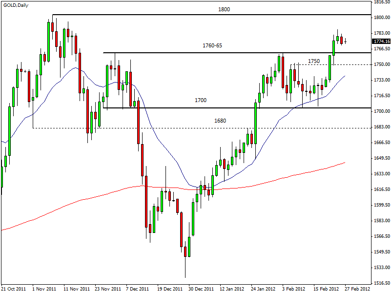 Dopo aver sfiorato quota 1790$, il gold ha iniziato a correggere il tiro. Sarebbe ottimo un ritorno in area 1760$ o addirittura 1750$, dove si potrebbe tentare una long a basso rischio.