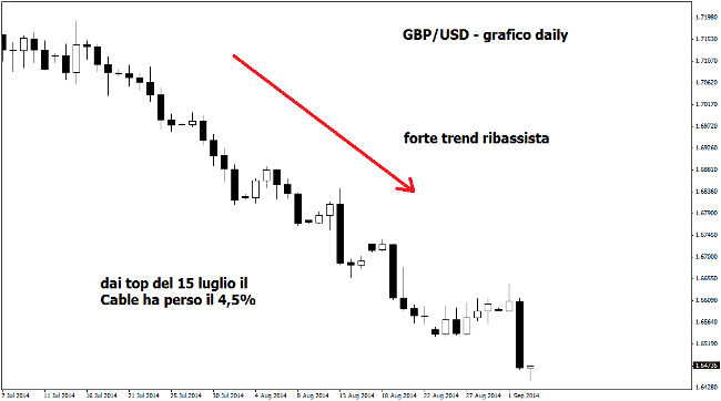 Non si placano le vendite sulla sterlina, che fino a metà luglio scorso era una delle grandi protagoniste sul mercato forex raggiungendo tra l’altro il massimo più alto da ottobre 2008 poco sotto quota 1,72 dollari. Da allora la valuta di Sua Maestà ha registrato un brusco sell-off, con i prezzi che stamattina sono addirittura scesi sotto 1,6450 ai minimi da metà febbraio scorso. La sterlina sta soffrendo la spaccatura venutasi a creare recentemente all’interno del Monetary Policy Committee della Bank of England, dove alcuni membri del board avrebbero voluto sin da subito un incremento del costo del denaro dall’attuale minimo storico dello 0,5%.