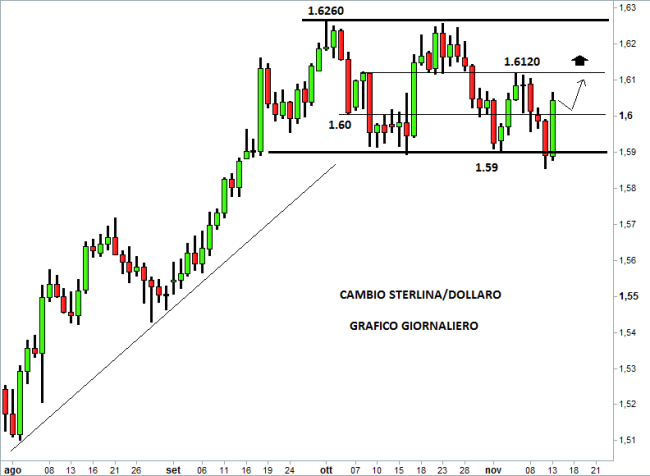 In particolare Carney ha sottolineato che queste indicazioni sono ancora più significative alla luce delle nuove stime sull’inflazione a medio termine, che sono state abbassate, e sull’economia britannica, che è attesa in crescita del 2,8% nel 2014, quindi più del 2,5% prospettato tre mesi fa. Sul forex la sterlina ha mostrato grande volatilità nei confronti delle major currencies soprattutto nella prima parte della giornata di ieri. Il tasso di cambio sterlina/dollaro, che il giorno prima era sceso fino in area 1,5850, è riuscito a recuperare alla grande riportandosi addirittura sopra 1,6050. A questo punto i prezzi dovrebbero trovare un punto d’appoggio a 1,60 e poi tentare la fuga verso 1,6120 prima e 1,6250 poi nei prossimi giorni.