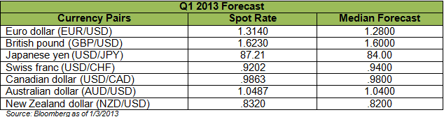 Ora che l’orologio ha segnato il 2013, penso sia giunto il momento di fare una piccola ricerca per vedere quello che le banche più grandi del mondo prevedono per il mercato forex nel primo trimestre dell’anno.