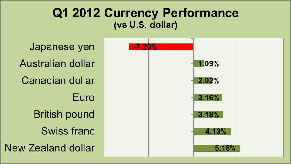 Forex: uno sguardo alla performance delle principali valute nel primo trimestre 2012.