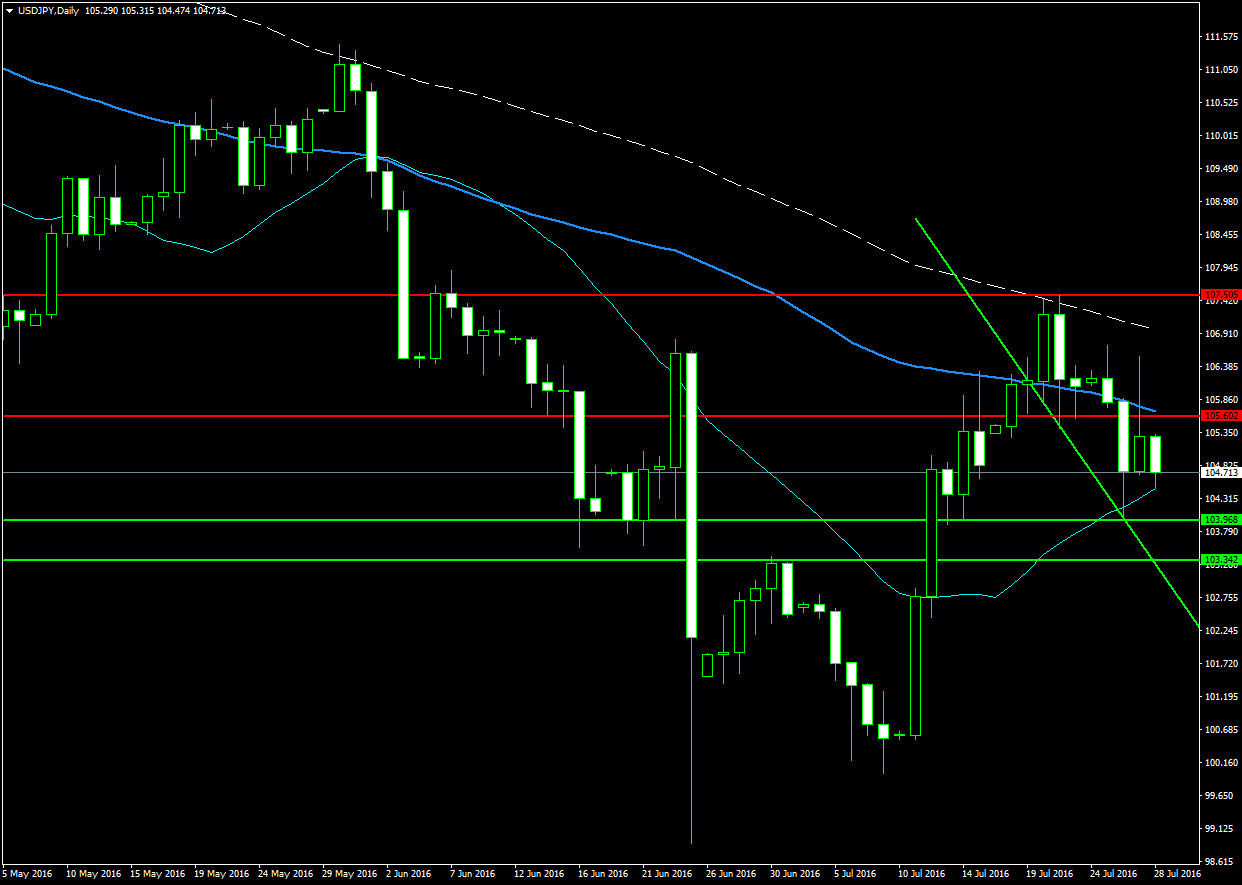 Se domani le aspettative del mercato dovessero essere realizzate, tuttavia, è possibile guardare ad una ripresa del rialzo per i cambi EUR/JPY e USD/JPY, con l’abbattimento di importanti livelli, come osservabile dal seguente grafico giornaliero di dollaro-yen: