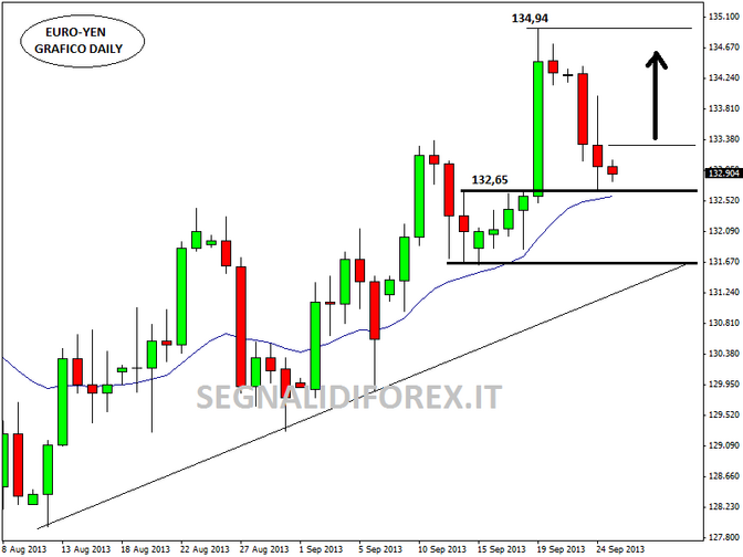 Sul forex il tasso di cambio dollaro-yen è sceso stamattina a 98,50 e attualmente quota sui minimi di giornata. In ogni caso siamo su una zona di supporto davvero molto importante e non facile da perforare. Il cross euro-yen, invece, è tornato poco sotto 132,70 su una zona di supporto giornaliera rilevante. Nelle prossime ore, nel caso in cui dovesse migliorare il sentiment sui mercati europei, lo yen potrebbe nuovamente perdere terreno e tornare così a deprezzarsi.