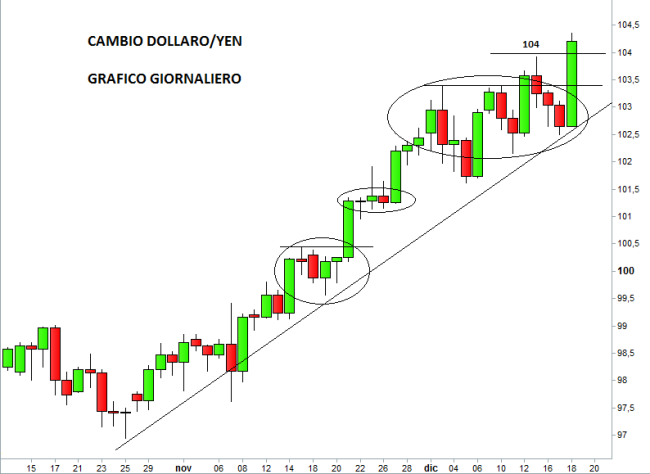 La reazione molto positiva delle borse americane all’annuncio dell’avvio del tapering da parte della Federal Reserve ha creato i presupposti per un aumento dell’appetito per il rischio sui mercati finanziari, favorendo ancora la discesa dello yen. La divisa nipponica ha subito anche ieri forti pressioni ribassiste, che lo hanno portato a toccare nuovi minimi a 5 anni su dollaro e sterlina. Anche la borsa di Tokyo ha reagito bene al mini-tapering della FED. L’indice azionario Nikkei-225 ha chiuso la seduta con un rialzo dell’1,74% a 15.859,20 punti, avvicinandosi così ai massimi dell’anno di 15.942,60 punti risalenti allo scorso 23 maggio.