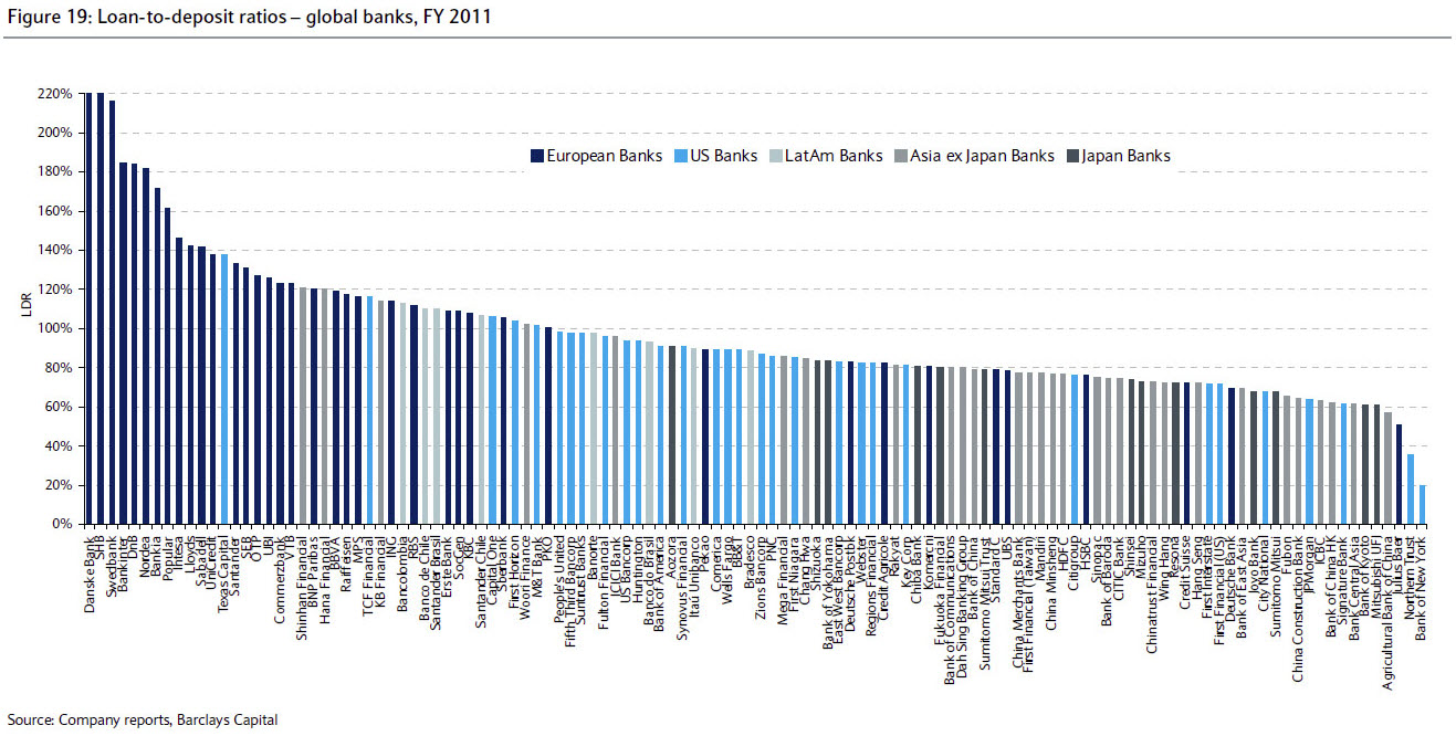 L’unico motivo per cui l’Europa è stata lenta a ridurre i prestiti (come dimostra l’aumento artificiale del debito insoluto in Spagna e Italia) negli ultimi 4 anni è che una rappresentazione completa della realtà sul lato degli attivi (come quella che si è raggiunta a Cipro) porterebbe ad un collasso drammatico negli attivi patrimoniali, richiedendo una stretta analoga anche sul lato dei passivi, dove le passività non garantite come i depositi subirebbero certamente anch’essi un duro colpo.