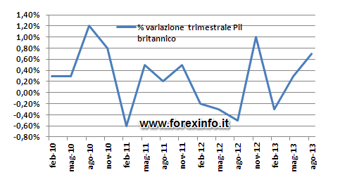 Alle 10:30 ora italiana sono usciti i dati sulle stime del Pil britannico per il terzo trimestre del 2013. Il dato si è attestato ad un +0,8%, confermando le attese deglio analisti. Il dato rivisto per il secondo trimestre era anch’esso pari allo 0,8%.