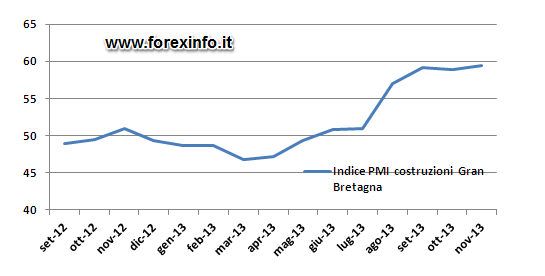 Alle 10:30 ora italiana sono usciti i dati di Novembre sull’indice PMI delle costruzioni per la Gran Bretagna. Il dato effettivo è pari a 62.6, di molto superiore alle attese (59.3) mentre per Ottobre il dato effettivo era pari a 59.4.