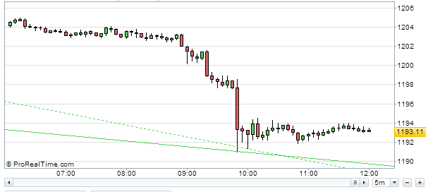 Nella divisione Comex del New York Mercantile Exchange, i futures dell’oro con consegna ad aprile hanno colpito un livello basso di sessione a 1,190.70 dollari all’oncia, un livello che non si vedeva dal 5 gennaio; scambiato ora a 1,193.00 dollari, in calo di 11,90 dollari, o 0,99%.