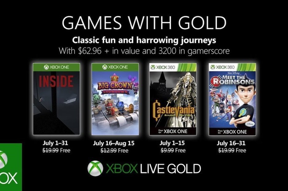 Quali sono i titoli gratis disponibili al download con i Games with Gold di luglio 2019? I giocatori abbonati potranno scegliere tra Inside, Castelvania Symphony of the Night, Big Crown Showdown e Meet the Robinsons.