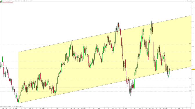 È evidente l’andamento da marzo 2016, sottolineato dal trend rialzista disegnato dai prezzi, che hanno fatto apprezzare il gas naturale da area 2.70$ a livelli intorno a 3.80$ (massimi di ottobre/dicembre 2016).
