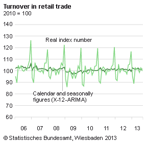 Secondo i primi dati provvisori dell’ Ufficio di Statistica Federale (Destatis), l’indice delle vendite al dettaglio ad Agosto 2013 in Germania è cresciuto dell’1,6% in termini nominali e dello 0,3% in termini reali rispetto ad Agosto 2012.