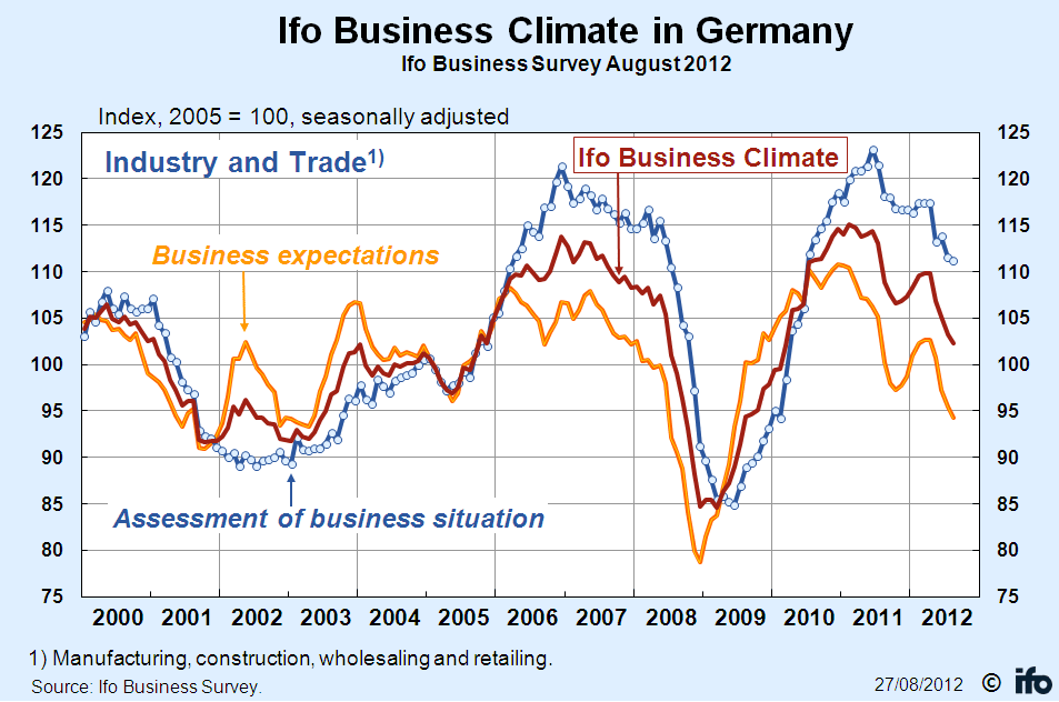 L’indice IFO è in calo per il quarto mese consecutivo, un segno evidente che le aziende tedesche soffrono la crisi Europea e che la Germania continua a perdere colpi.