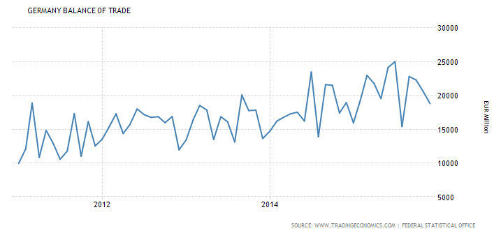 La Germania ha goduto di un surplus commerciale strutturale sostenuto dall’euro più debole, che ha colpito livelli record a 25 miliardi di euro di giugno.