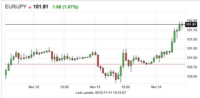 Lo Yen è in rapido calo dopo che il Primo Ministro del Giappone, Yoshihiko Noda, ha annunciato le elezioni anticipate al prossimo mese. Il parlamento sarà sciolto il prossimo 16 novembre e le elezioni si terranno a dicembre.