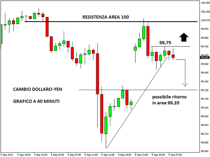 Sul forex lo yen ha aperto in forte calo, complice il miglioramento del clima di appetito verso il rischio. Il tasso di cambio dollaro-yen, protagonista di un poderoso sell-off nella seduta di venerdì (a causa delle tensioni in Siria e per i non-farm payrolls sotto le attese), è balzato nuovamente sopra quota 100, toccando un top intraday a 100,10. Il cross euro-yen, invece, è tornato sopra 131,80, dopo che venerdì era sceso fin sotto 129,90.