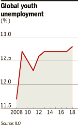 Il tasso di disoccupazione giovanile (definito per le persone comprese tra i 15 e 24 anni) è aumentato dal 11.5% del totale della forza lavoro nel 2007, al 12.4% del 2012 a causa del rallentamento economico su scala mondiale, ma la situazione sembra essere destinata a peggiorare.