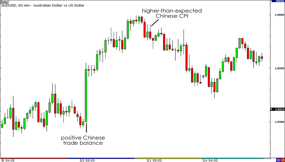 Proprio la scorsa settimana, la coppia AUD/USD è salita di ben 50 pip al rilascio dei dati positivi sulla bilancia commerciale della Cina, a 31.6 miliardi di dollari rispetto ai 20.1 delle previsioni. Anche il suo rapporto CPI ha causato un putiferio! Il tasso di inflazione della Cina più alto del previsto a 2.5% che ha superato il consenso del 2.3%, ha fatto capire che la PBoC potrebbe non aggiungere più stimolo economico nel prossimo futuro.