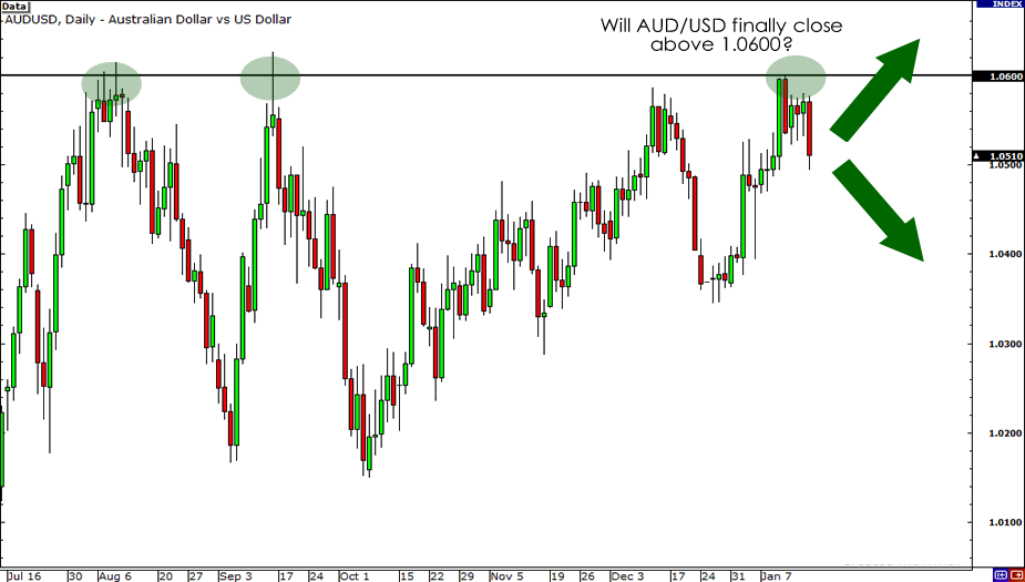 E su superasse le aspettative e si attestasse sopra l’8.0%, non sarei sorpreso di vedere che AUD/USD chiudesse a 1.0600, per la prima volta da Marzo 2012.