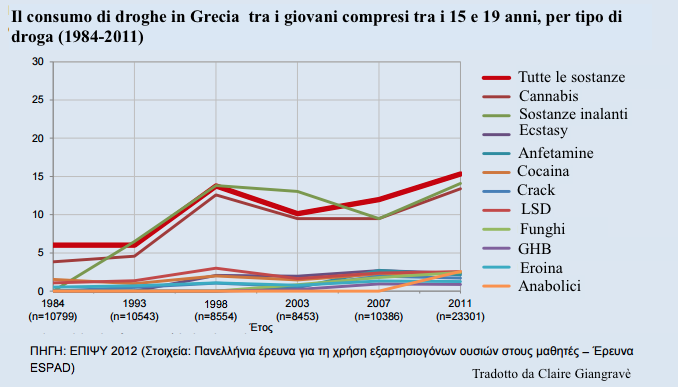Secondo uno studio dell’Istituto Universitario per la Salute Mentale in Grecia, l’utilizzo di droghe è aumentato tantissimo negli ultimi anni nell’età compresa tra i 15 e 19 anni.