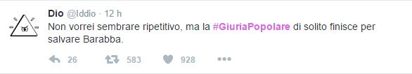 Riguardo le giurie popolari, il Padreterno approfitta di Twitter per ricordarci una cosa: