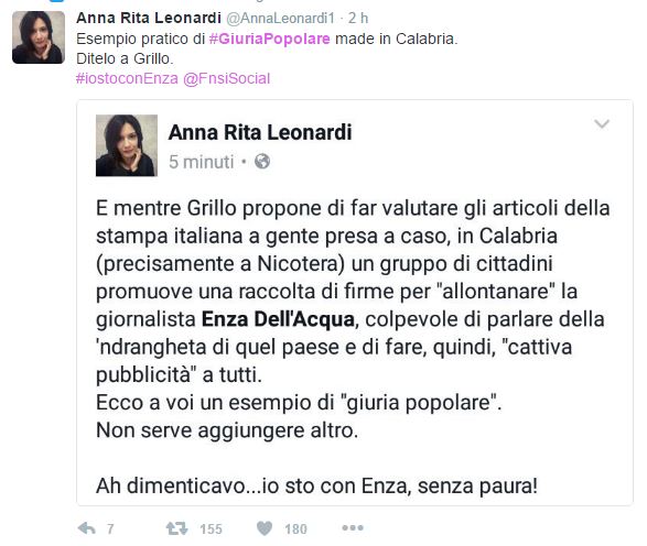 Le critiche alla Giuria popolare di Grillo sono giunte, ovviamente, anche dal mondo politico, e le affermazioni dell’ex comico a capo del Movimento 5 Stelle hanno richiesto l’intervento della Fnsi (Federazione nazionale stampa italiana), che ha parlato di “linciaggio mediatico contro tutti i giornalisti”. Tuttavia è dai social, Twitter in primis, che giungono i commenti migliori riguardo le intenzioni di Grillo.