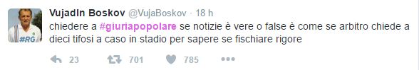 Cosa ne pensa il popolo di Twitter delle giurie popolari? C’è chi ha deciso di riderci sopra con battute e foto ironiche, chi ha criticato Grillo senza giri di parole, ma anche chi ha lanciato “frecciatine” alle testate giornalistiche accusate di essere faziose o vendute al governo di turno. I commenti e i tweet sulla #Giuriapopolare sono tantissimi e alcuni sono molto divertenti. Per leggerli tutti potete andare su Twitter cliccare su #GiuriaPopolare o #giuriepopolari: se non dovesse bastarvi e volete leggere altri commenti gli argomenti correlati sono #grillo e #mentana.