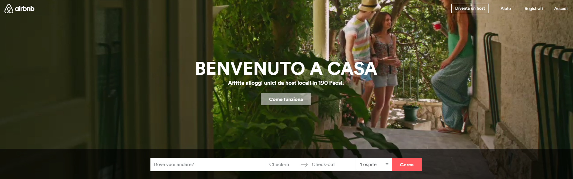 Secondo il portale, Airbnb è una “community” dove le persone possono inserire un annuncio, scoprire e prenotare alloggi unici in tutto il mondo.