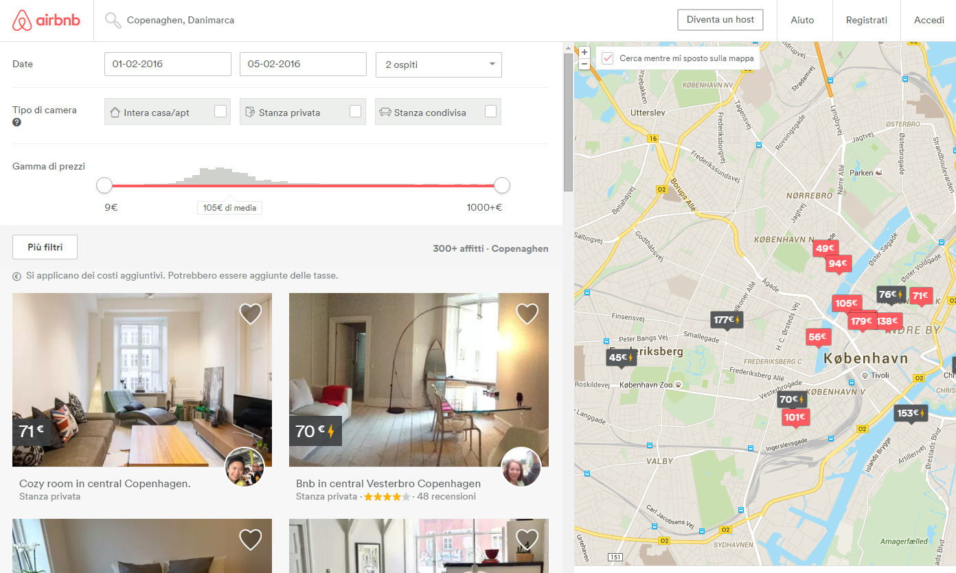 I viaggiatori, ovvero gli ospiti, cercano all’interno del database di Airbnb che comprende tutti gli annunci degli alloggi disponibili a seconda del periodo richiesto. Gli ospiti possono affinare la ricerca inserendo una o più preferenze per: