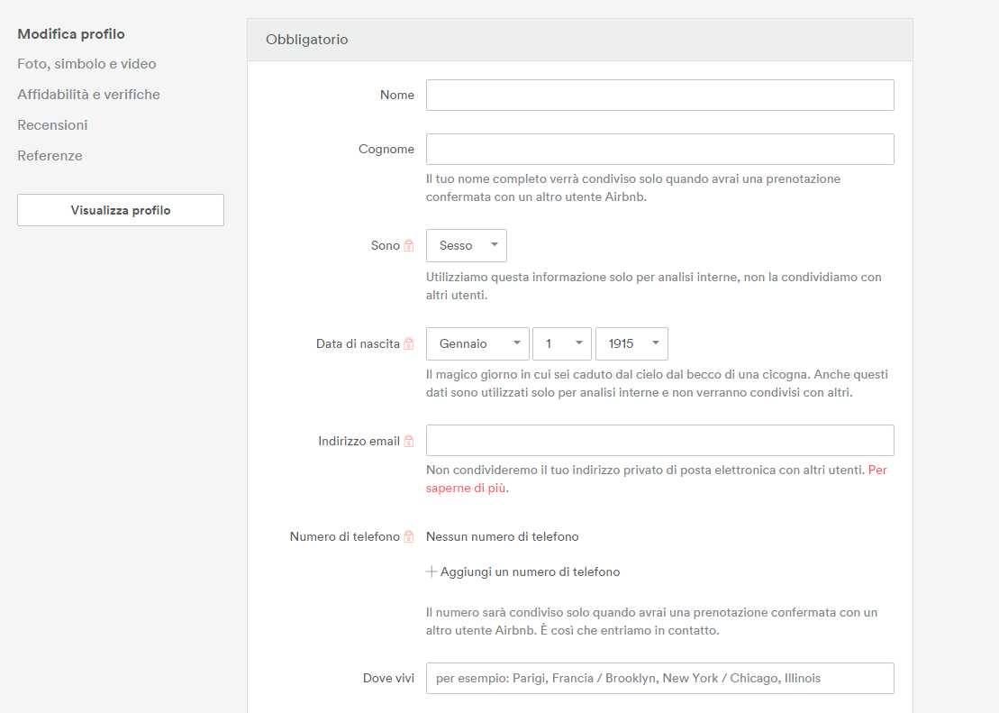 L’utente può effettuare la registrazione su Airbnb tramite: