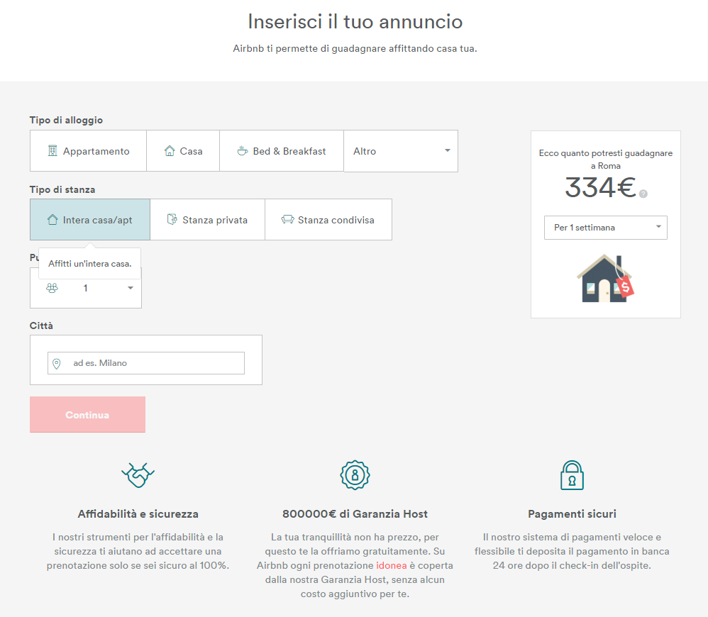 Inserire un annuncio è gratuito e gli stessi host possono decidere individualmente quanto far pagare a notte, a settimana o al mese.