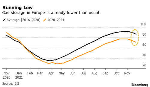 il bassissimo livello delle scorte di gas con cui l’Europa si è presentata all’appuntamento con la stagione fredda.