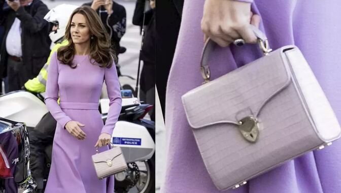 Kate possiede diverse borse firmate Aspinal of London, un elegante brand britannico amatissimo dalle sorelle Middleton. Qui stringe tra le mani la sua Lilac Small Croc Midi Mayfair, modello di punta del marchio di pelletteria luxury nato nel 2001 e rapidamente divenuto cult. Con uno stile senza tempo d’ispirazione vintage, la Midi Mayfair Bag è realizzata a mano con la migliore pelle di vitello italiano a stampa coccodrillo. La duchessa di Cambridge ama molto questa borsa perché l’ha sfoggiata in molte occasioni negli ultimi anni, scegliendola di colori diversi.