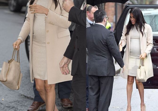Meghan Markle è una grande fan di Stella McCartney, tanto che la stilista ha anche disegnato persino il suo abito da sposa per le nozze con il principe Harry. Nel suo tempo relativamente breve sotto i riflettori come reale, la Duchessa ha mostrato una chiara propensione per la griffe, scegliendola più e volte anche per le borse, come questo modello Falabella Reversible Tote Bag in beige, che ha sfoggiato quando era incinta del suo primogenito.