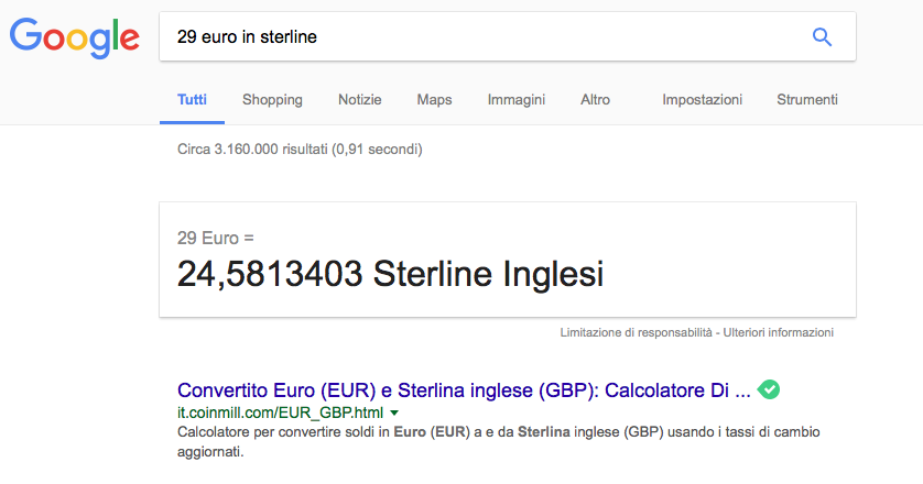 4. Google come calcolatrice