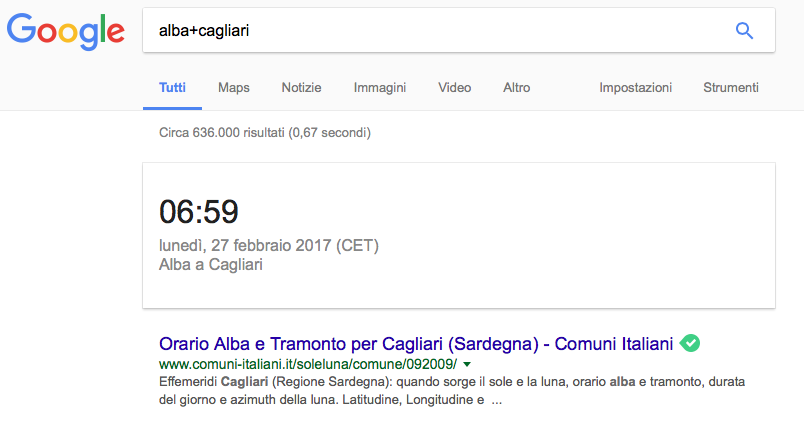 Usando il comando “+” per le ricerche di Google possiamo filtrare significativamente i risultati orari sul motore di ricerca di Mountain View. Se cerchiamo l’orario della programmazione di un film o l’orario dell’alba o del tramonto in una città miglioreremo i risultati usando il tasto “plus”.
